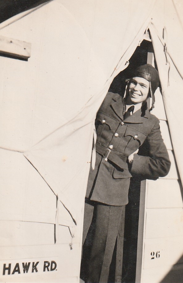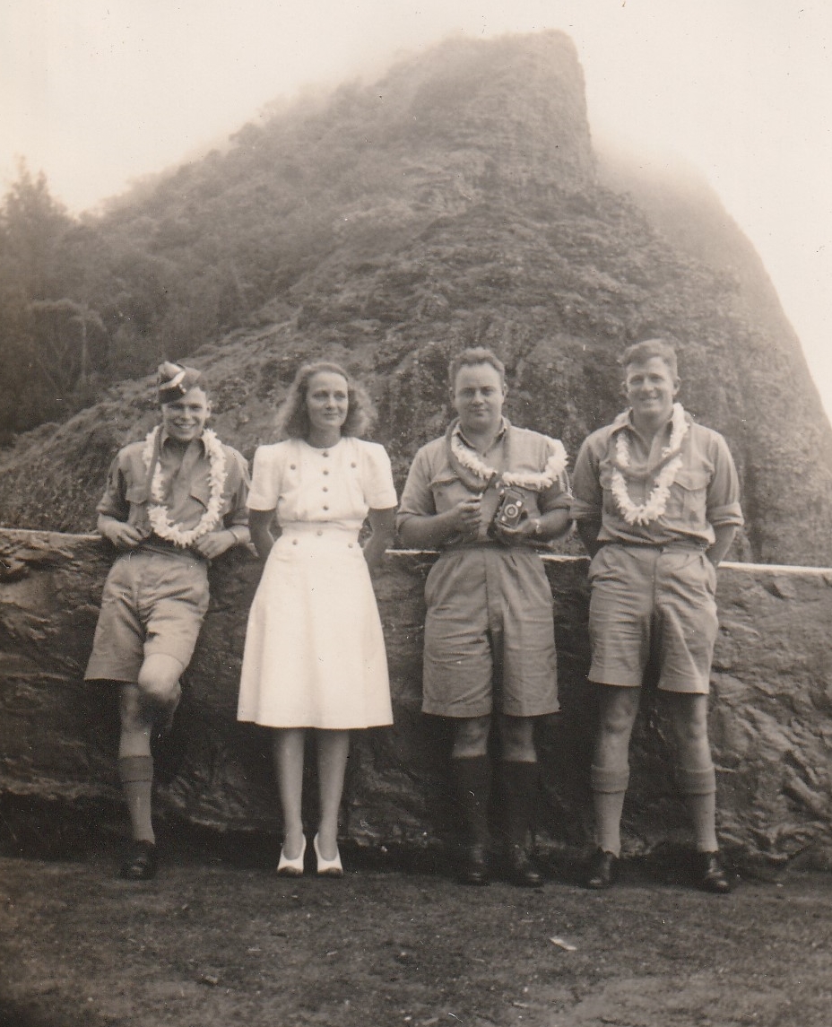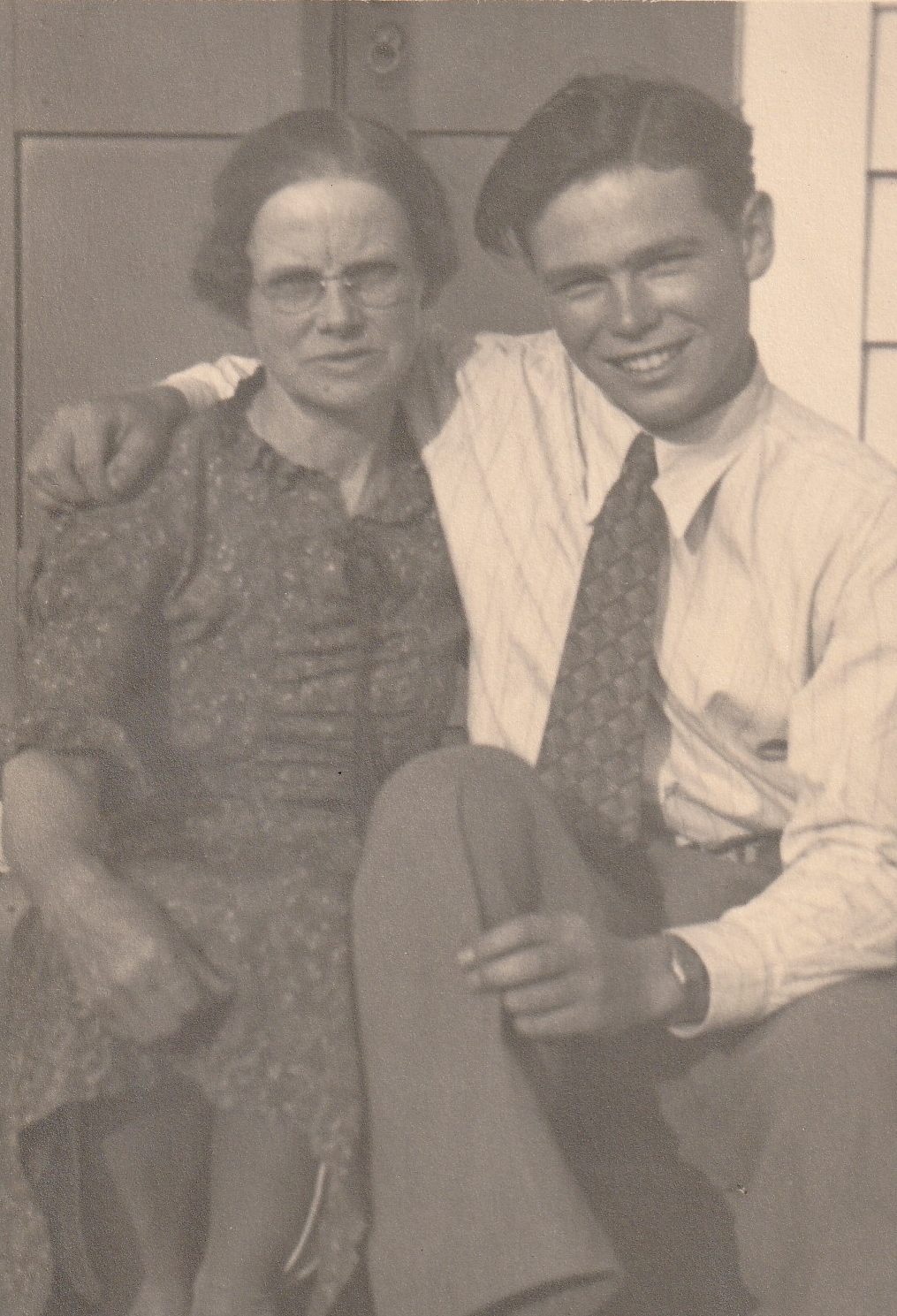 Arnold parents - Anton and Lillian - and older sister Hazel Arnold and his older sister Hazel Arnold as a maid for a play at Stalag Luft III